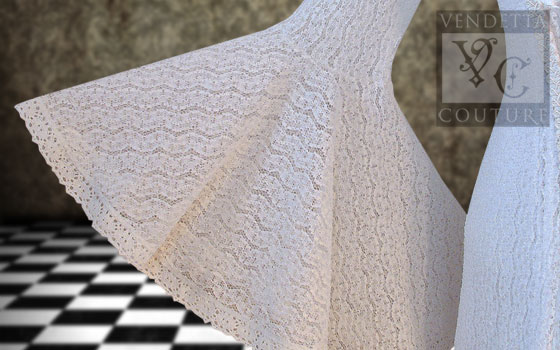 This dress is made entirely in a white soft stretch lace.